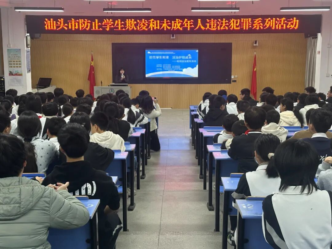 精准普法,厘清行为之界。法治讲座秉持“同一主题,分层设计”的原则,邀请了法治副校长和律师开展多维普法解读,靶向施教满足各校园的差异化法治需求。在广澳学校,法治副校长黄隆如以法治小剧场为引,从未成年人保护法、预防未成年人犯罪法等核心法律框架出发,通过以案释法将近年来典型涉青少年案件进行类型化梳理与深度解构,重点剖析了侵害健康权、违反治安管理处罚法、故意杀人等与学生密切相关的法律问题,引导学生由人及己,反躬自省,坚决不能逾越法律的底线。在滨海中学和达濠第三中学,广东融易律师事务所律师李晓生动形象地阐释了“什么是学生欺凌”,系统讲解了学生欺凌的种类、危害、法律责任以及应对方法,清晰划定了从“不良行为”到“违法犯罪”的渐进红线,警示学生“勿以恶小而为之”。又将法治小剧场设计为互动环节,从法律知识竞答到情景模拟讨论,再到典型案例思辨,学生沉浸其中、主导讨论,真正实现了从被动接受到主动参与的转变。
